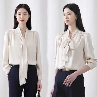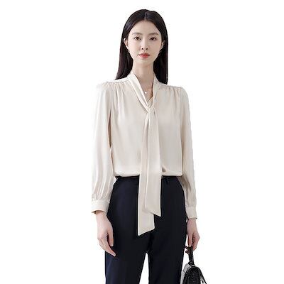 2025 春 夏 シャツ レディース ブラウス フォーマル 長袖 リボン 通勤 オフィス シフォン トップス 韓国ファッション