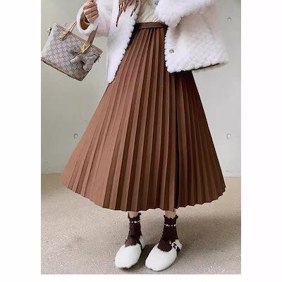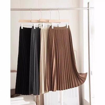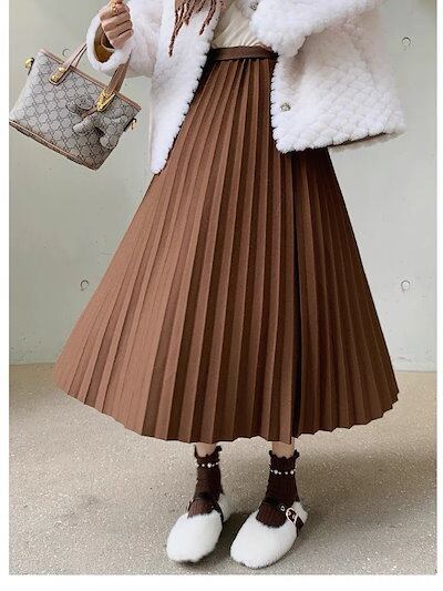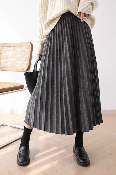 2025 春 人気 ロングスカート グレー ツイード プリーツスカート レディース スカート 韓国ファッション
