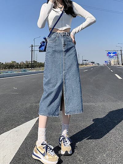 2025 春 人気 ロングスカート デニム 体型カバー 大きめサイズ レディース スカート 韓国ファッション