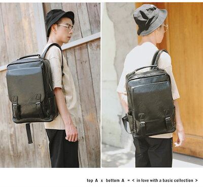 韓国ファッション大人気おしゃれな大容量簡約PUレザーデイバッグリュックサックメンズ