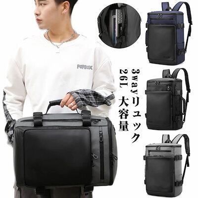 リュック 大容量 26L 3way リュックサック バックパック 大きめ 軽い 通学 スポーツ 高校生 中学生 B4 A4 PC収納 スクエア ボックス型 メンズ レディース A4書類かばん アウトド