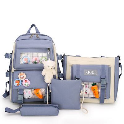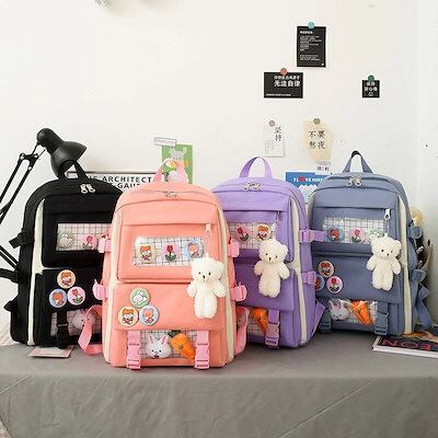 (一部1〜3日出荷)小中学生向けの韓国の新しい4点セットのランドセルフレッシュで甘く透明なステッチバックパックチュートリアルの潮流