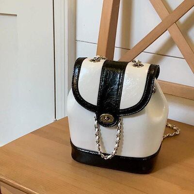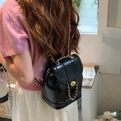 韓国版23新型シンプルなワックス革のランドセル女性 pu チェーンのランドセル 今すぐ欲しいバックパック 大容量トート