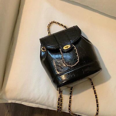 韓国版新型シンプルなワックス革のランドセル女性 p チェーンのランドセル 今すぐ欲しいバックパック 大容量トート