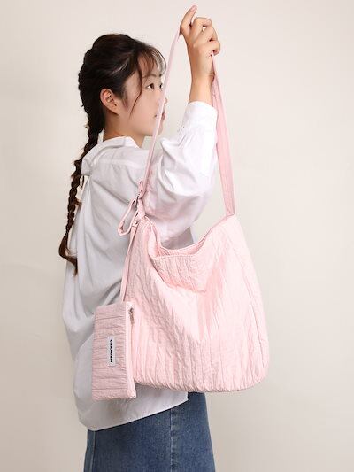 2024春夏新作バッグ女性百合シンプル大容量斜めショルダーバッグ韓国系カジュアルギャザーシングルショルダー大バッグ