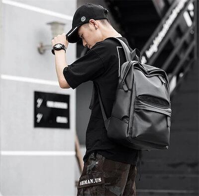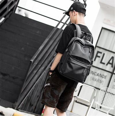 韓国ファッションレザー シンプル バックパック メンズ ファッション トレンド レジャー 旅行 コンピューターバックパック 中学生 スクールバッグ メンズバッグ