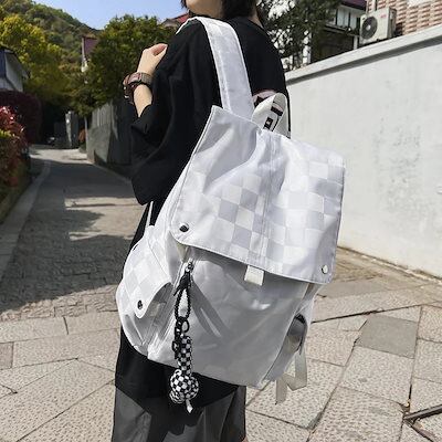 バックパックフラップリュック白黒チェックファッション ニューデザイン韓版気質シンプル日系流行り無ストラップ大容量リュック レディース