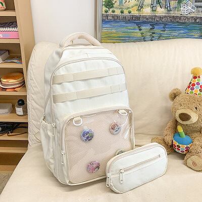 2025 新作 取り外し可能なペンバッグ スクールバッグ 透明ポケット かわいい ペインバッグ シンプル 無地 女性 学生 ショルダーバッグ