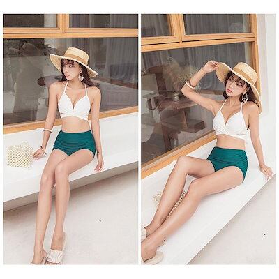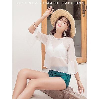 ビキニ水着レディース 夏 ビキニ3点セット水着 体型カバー 韓国風 紫外線カット シフォンブラウス 小胸バンドゥビキニ セクシー スイムウェア 温泉 ママ水着