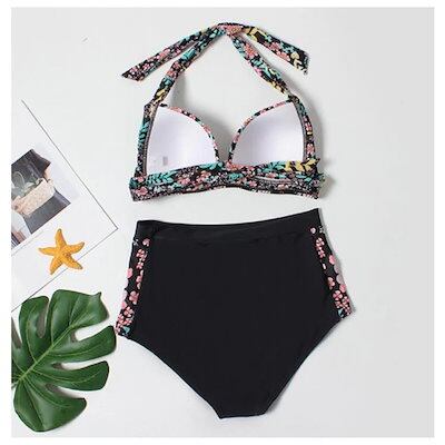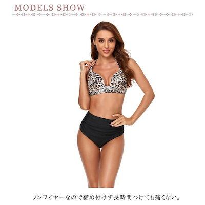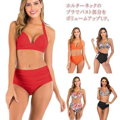 ビキニ 水着 レディース 夏 ホルターネック バスト 盛れる 2点セット ノンワイヤー 無地 レオパード セパレート シンプル きれいめ