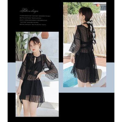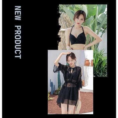 水着 レディース 3点セット 夏 小胸 バンドゥ 水着セット ビキニ パレオ 大きいサイズ リゾート パッド付き 韓国風 体型カバー 日焼け防止 20代 30代 40代 50代