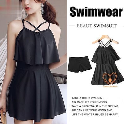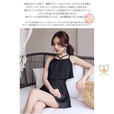 胸パッド 体型カバー ビーチ 盛れる フリル 水着 ワイヤーなし ワンピース レディース ショーツ 2点セット プール 海 セパレート