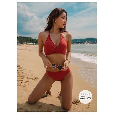 水着 レディース 春 夏 春夏 黒 ビキニ セット 無地 白 ブラック 女性 ママ 海 プール ホワイト ピンク ブルー カーキ テラコッタ