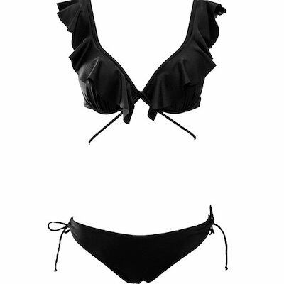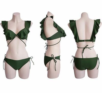 水着レディース 水着 体型カバービキニスイムウェアトライアングルビキニセパレート紐三角フリル胸元谷間 谷間見せセット上下セット水着 エロい 韓国 着痩せ