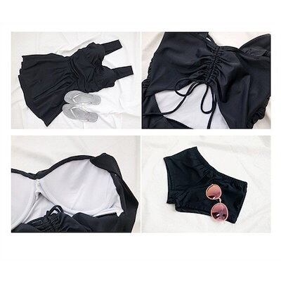 限定値下げ! 水着 体型カバー 大きいサイズ ワンピース水着 レディース 黒ワンピース 2点セット セパレート 大きいサイズ ワイヤー入り 盛れる ママ水着 セクシー 効果補正