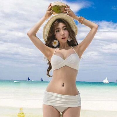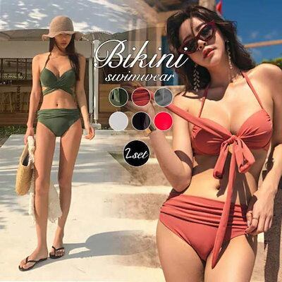 ビキニ レディース 水着 体型カバー クロス カシュクール 水着 上下 2点セット 水着 エロい 韓国 着痩せ セパレート 海水浴 リゾート セクシー 無地 夏 ノンワイヤー リボン 韓国 着痩せ風