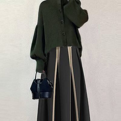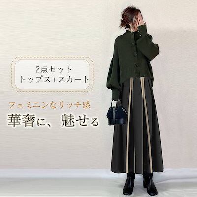 新作 気質 ニットセットアップ 着痩せ ハイネック セーター トップス ロングスカート 二点セット 百掛け レディースファッション 福袋 大きめサイズ