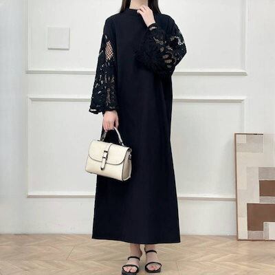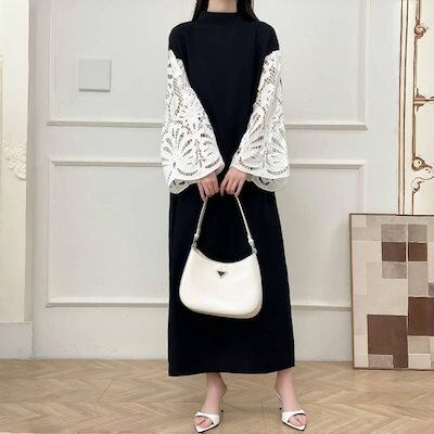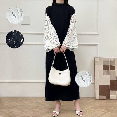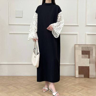2色 新作 韓国 ワンピース 長袖ワンピース 高級感  パーティー ドレス レース切り替え ロングワンピース フレアスリーブ 気質 着やせ おしゃれ ワンピース レディース