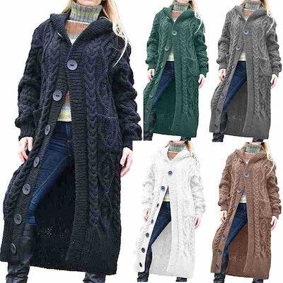 Tシャツ 韓国 AWアウタ一 流行り ニットカーディガン 厚手 レディース 春秋 ゆったり ボリューム袖 アウター トップス ニット ロングカーディガン 羽織 前開き もこもこ 暖か 厚手 フード付き
