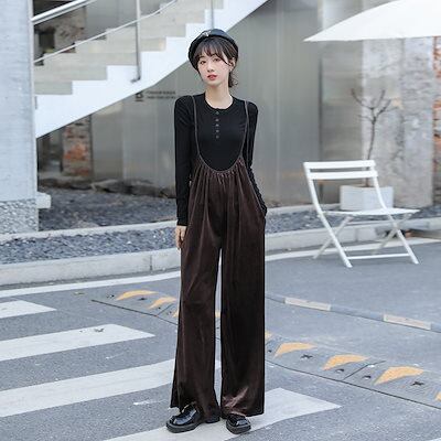 韓国ファッション サロペット レディース 春秋 大きめ ゆったり ワイドパンツ ストレート 垂れ感 着痩せ オールインワンパンツ 無地 カジュアル 百掛け