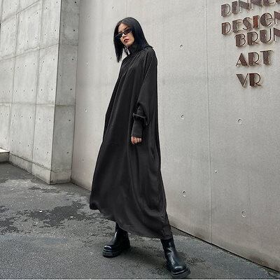 新作 フレンチヴィンテージ ワンピース 長袖ワンピース 高級感  ワンピース ハイネック ゆったりランタンスリーブ 大きいサイズ 着やせ おしゃれ ワンピース レディース パーティードレ