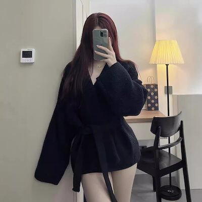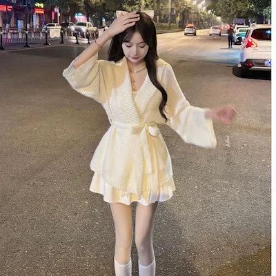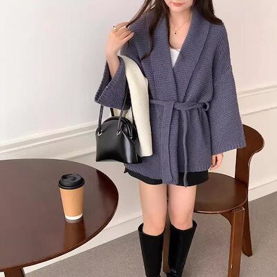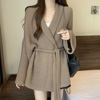 Tシャツ 韓国 春秋 新作 AWジャケット ニットアウター 長袖アウター ベルト 小香風 怠惰な風 レディース トップス ニットカーディガン 大きいサイズ ゆったり 百掛け