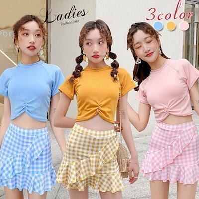 セパレート水着レディース平角スカート式2点セット可愛いスリムスイムウェアスイミング女性用おしゃれ温泉ビーチリゾートプール海