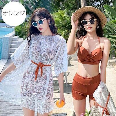 水着レディース体型カバーおしゃれビキニ3点セットママ水泳服スイムウェア可愛いスリムウェア可愛い露出控えめ温泉海水浴20代30代40代3色