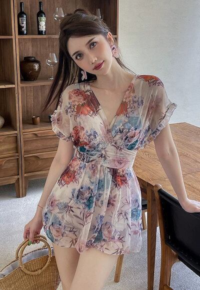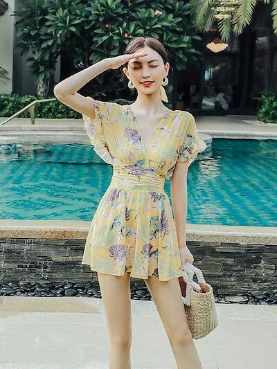 2024ストレッチ水着 レディース ンシンプルース オールインワン水着 スリム見え おしゃれ カップ付きインナー