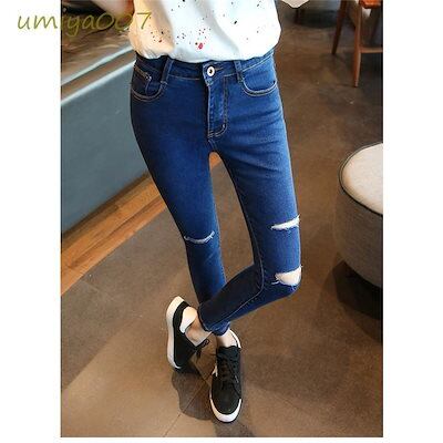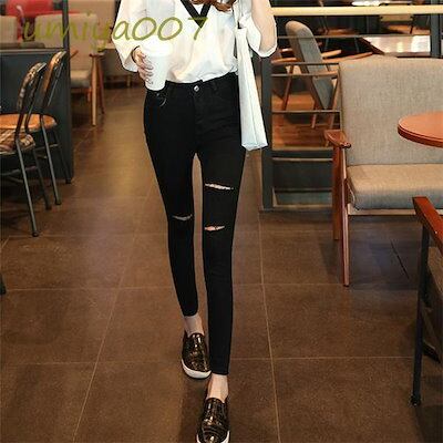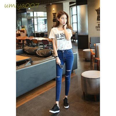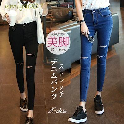 スキニーパンツ デニムパンツ ダメージ レディース ストレッチ スキニージーンズ ロング丈 大きいサイズ 美脚 ボトムス スリム お洒落 可愛い