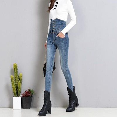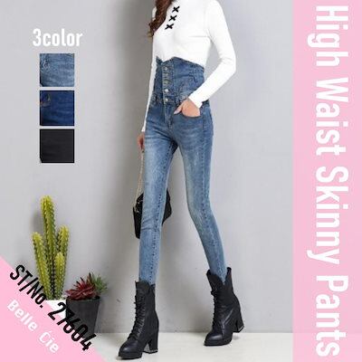デニムパンツ ハイウエスト スキニーパンツ レディース ジーンズ タイト デニム ストレッチ 黒 パンツ ブルー Gパン 大きいサイズ