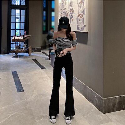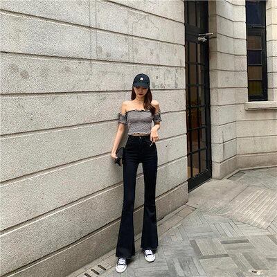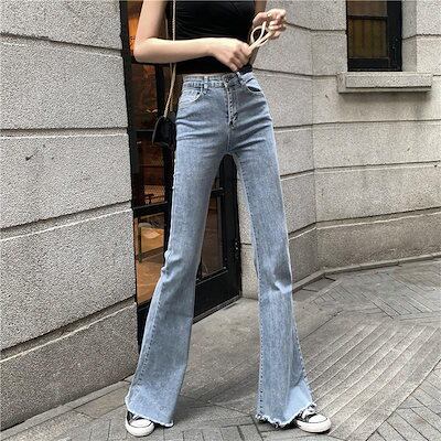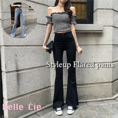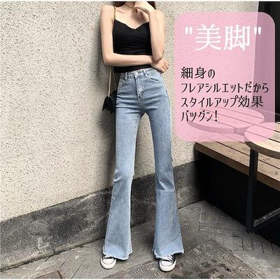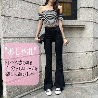 デニムパンツ フレア ジーンズ デニムパンツ レディース 黒 ストレッチ ベルボトム ブーツカット Gパン ズボン フレアパンツ