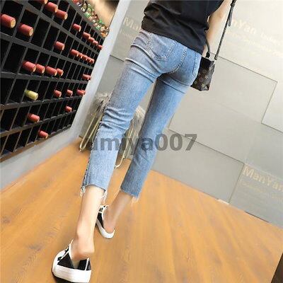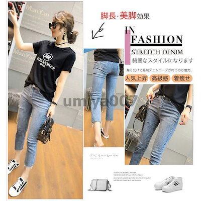 スキニーパンツ デニムパンツ ストレッチ ジーンズ ダメージ レディース ジーパン ボトムス 美脚 デニム 大きいサイズ 7分丈 ズボン