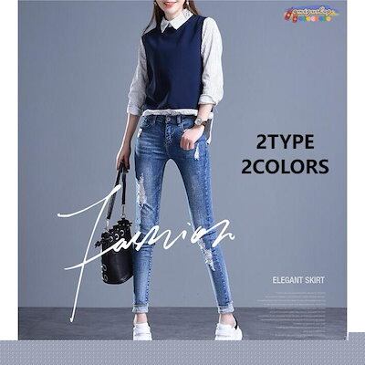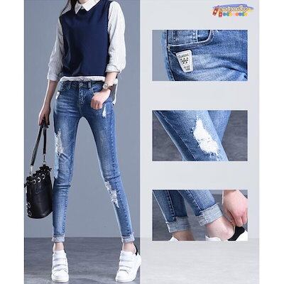 デニムパンツ スキニーパンツ レディース 大きいサイズ ストレッチ ダメージ ジーンズ デニム ジーパン 細身 ボトムス 美脚見せ アメカジ