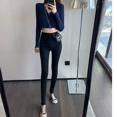 【3日以内出荷】脚長効果!スキニーデニムパンツ スキニー ライトブルー ジーンズ 春秋 ハイウエスト レディース スリム ストレッチ 9分丈パンツ ペンシルパンツ 韓国