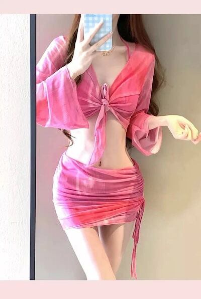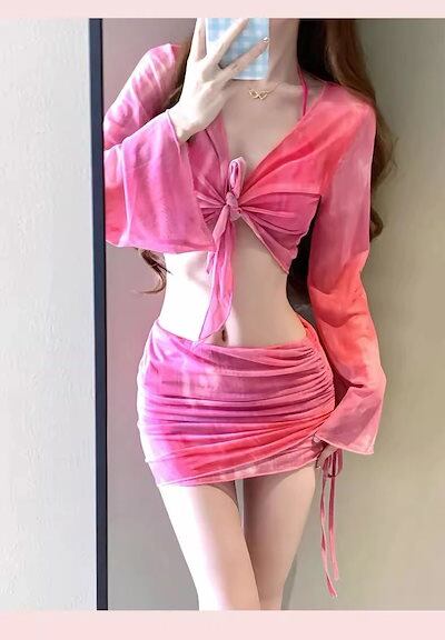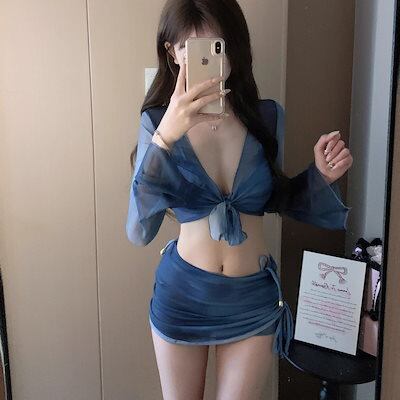 24 水着 4点セット ビキニ 韓国ビキニ 長袖 ハイウエスト スイムウェア 美脚 脚長 スタイルアップ 大人女子 韓国系ファッション レディース 海