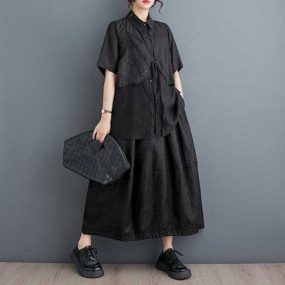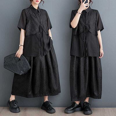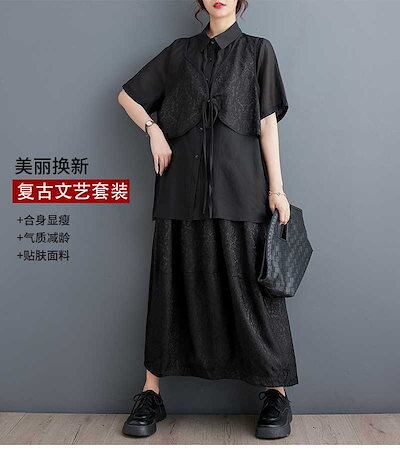 「ファットガール」 2025夏新品 上下セット ブラウス+スカート 大きいサイズ 体型カバー レディース セットアップ メガ割 福袋 T