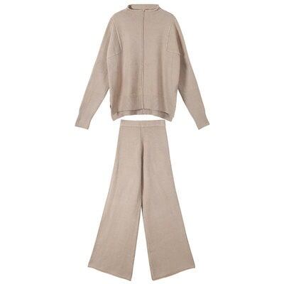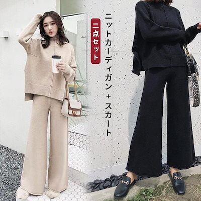ニット セット 気質 アップ セーター ワイドパンツ 2点セット レディース 春夏 ニットセーター 韓国 ラウンドネック 長袖 上下セットズボン ミモレ丈 ワイドパンツ 人気なリブニット T