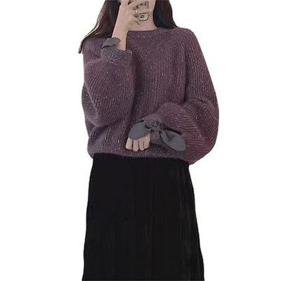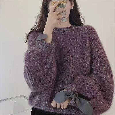 春夏定番ニットインナー!気質 エレガント 無地 ラウンドネック セーター レディース 人気なリブニット 蝶結び ベーシックニット 超極暖インナー トップス カシミヤタッチ 春夏服 福袋 T
