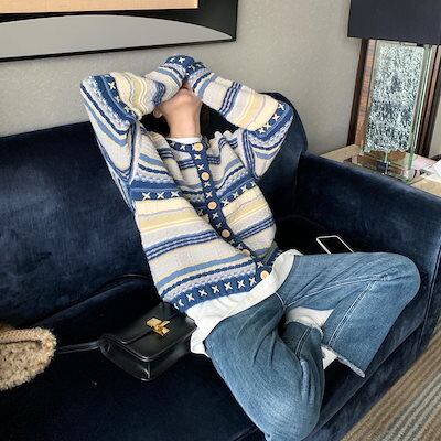 カーディガン アウター ニットカーディガン 花柄ニット セーター 長袖 レディースニットカーディガン インナー 大きいサイズ アンダーウェア V襟 日系 カシミヤタッチ 人気なリブニット 福袋 T