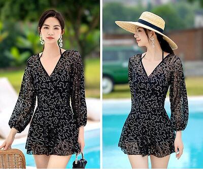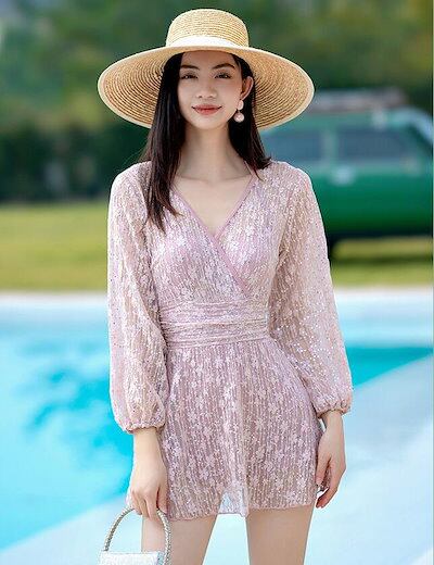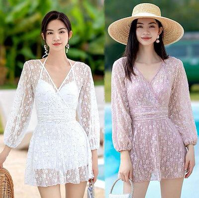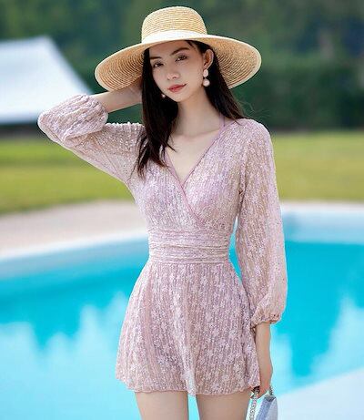 水着 レディース ガールズ スイムウェア ミズギ 盛れる 韓国風 レディース水着 ワンピース パット付き 可愛い水着 長袖 セクシー 連体 オールインワン水着 ビキニ 体型カバー タンキニ 女性 学生