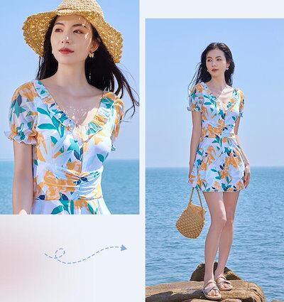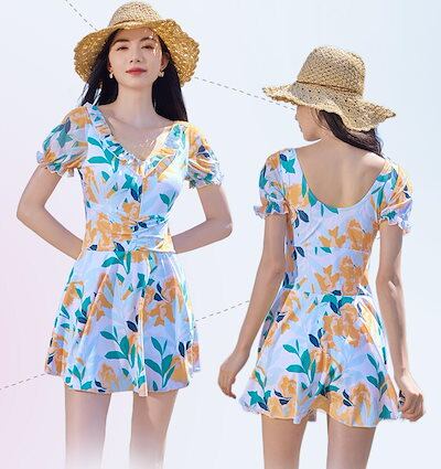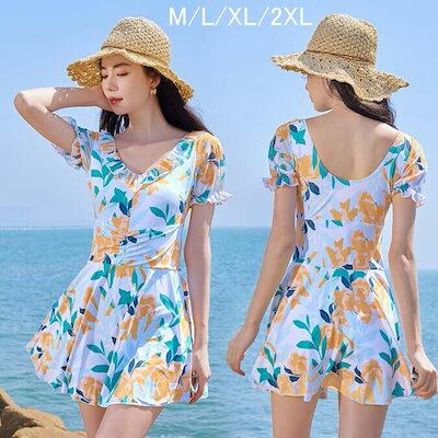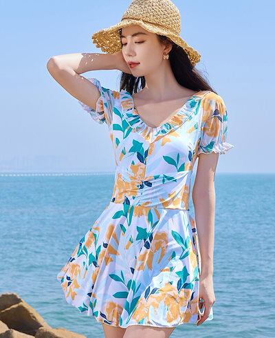 レディース 水着 Vネック ワンピース水着 みずぎ ママ水着 セクシー 海 リゾート ビキニ 韓国風 パッド付き 温泉 プール 可愛い水着 連体水着 見せパンツあり オールインワン 花柄 女性水着 タ