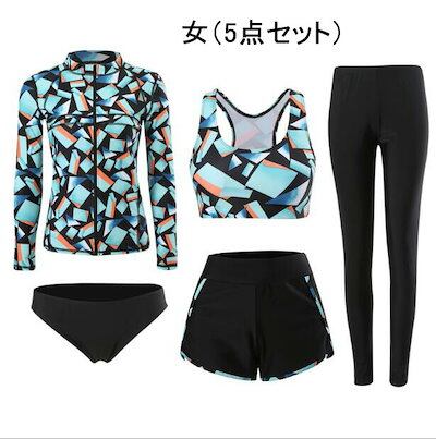 フィットネス水着 体型カバー レディース 5点上下セット メンズ 3点セット 水着 セット レギンス タンキニ セパレート 長袖 上下セット セットアップ ママ水着 20代 30代 40代 水着 韓国