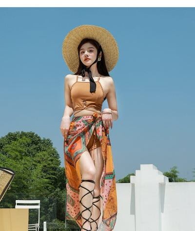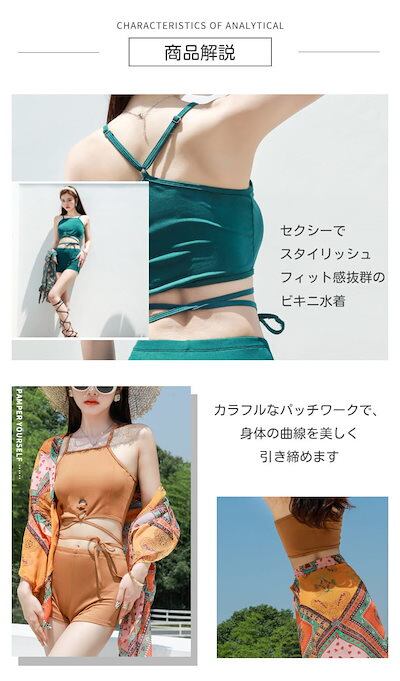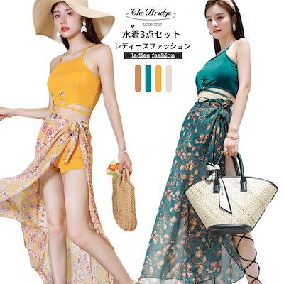 水着 韓国 レディース タンキニ 3点セット 水着 ミセス ママ水着 スカート付き 体型カバー オトナ女子 バックシャン セクシー ワイヤレス パッド付き 20代 30代 40代 お腹 露出控えめ 4