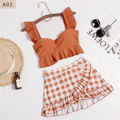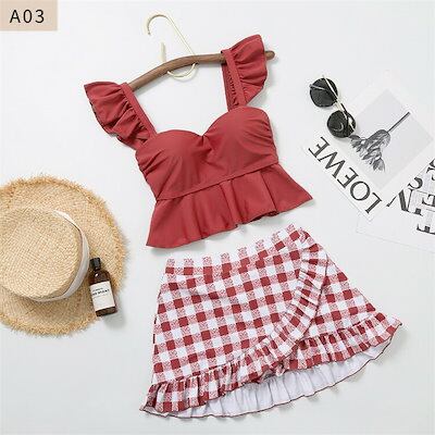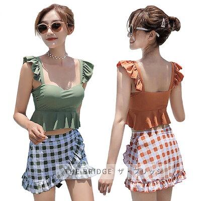 韓国 水着 体型カバー レディース 露出控えめ タンキニ 水着 セパレート 学生 チェック レディース水着 タンキニ 可愛い みずぎ ファッション 小胸も安心 海 プール リゾート 旅行
