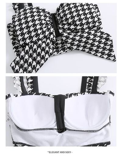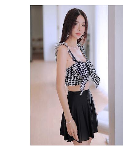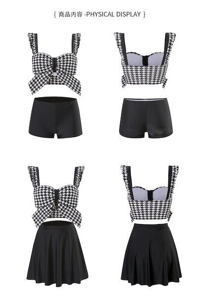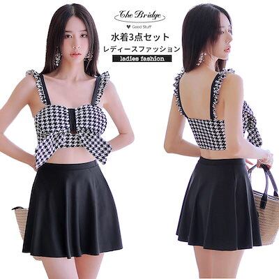 水着通販 レディース タンキニ セパレート水着 ビキニ 3点セット 千鳥 可愛い 水着 スカート 見せパン ワイヤレス パッド付き スイムウェア 韓国 千鳥柄 小胸 着痩せ お尻カバー 可愛い水着 レ