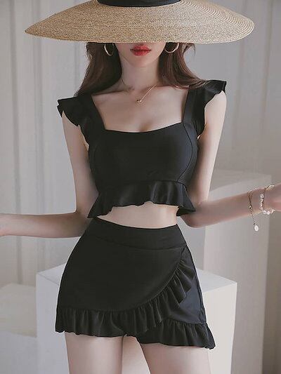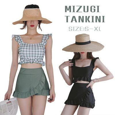 水着 タンキニ水着 韓国 レディース 体型カバー 可愛い フリル 小胸 水着 水着 タンキニ 露出控えめ セパレート 上下セット スカート 可愛い水着 安全パンツ みずぎ 学生 レディース スイム