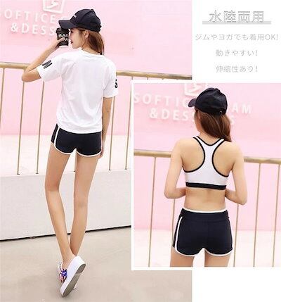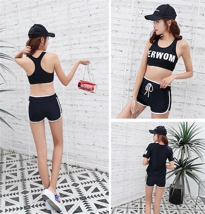 水着 ビキニ レディース 水着 体型カバー タンキニ ビーチ スイムウェア みずぎ 3点セット 小胸も安心 レディース水着 盛れる 韓国風 黒 ブラック 白 ホワイト