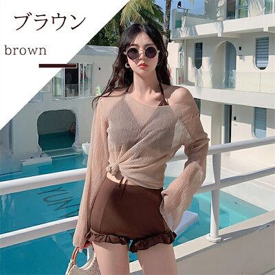 3点セット 水着 体型カバー 韓国風 ビキニ レディース 露出控えめ トップス セクシー かわいい セットアップ オトナ女子 ママ水着 大きいサイズ 高校生 大学生 スクール 女性向け 盛れる 海水浴