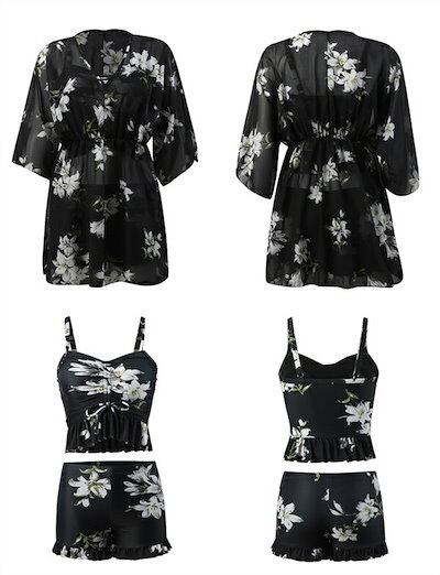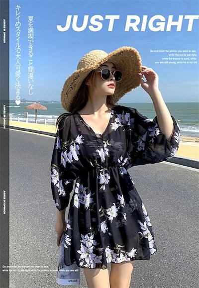 3点セット ワンピース 体型カバー ビキニ レディース 水着 露出控えめ ママ水着 ショートパンツ 大きいサイズ オトナ女子 韓国風 セクシー かわいい セットアップ 花柄 盛れる 海水浴 トップス